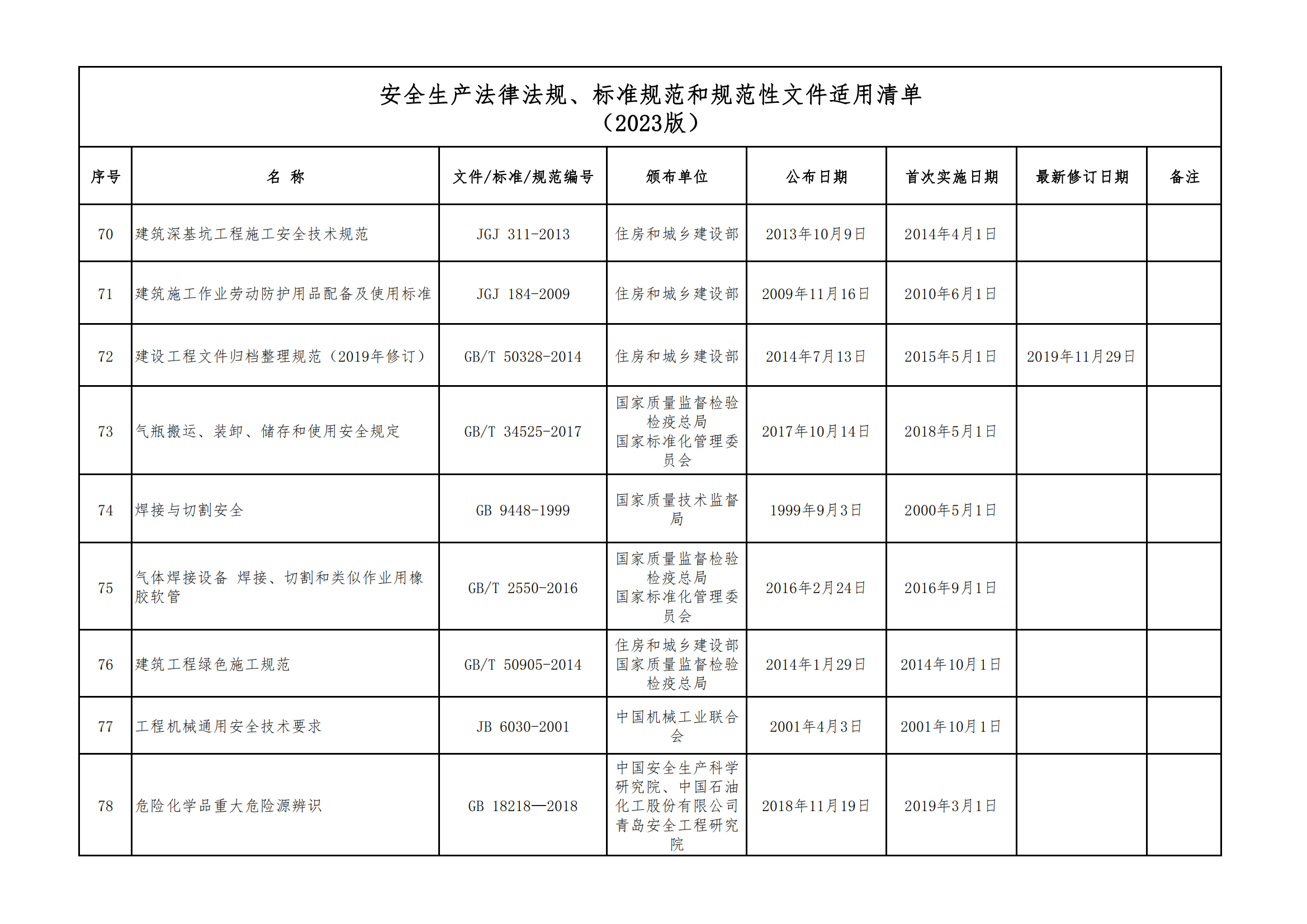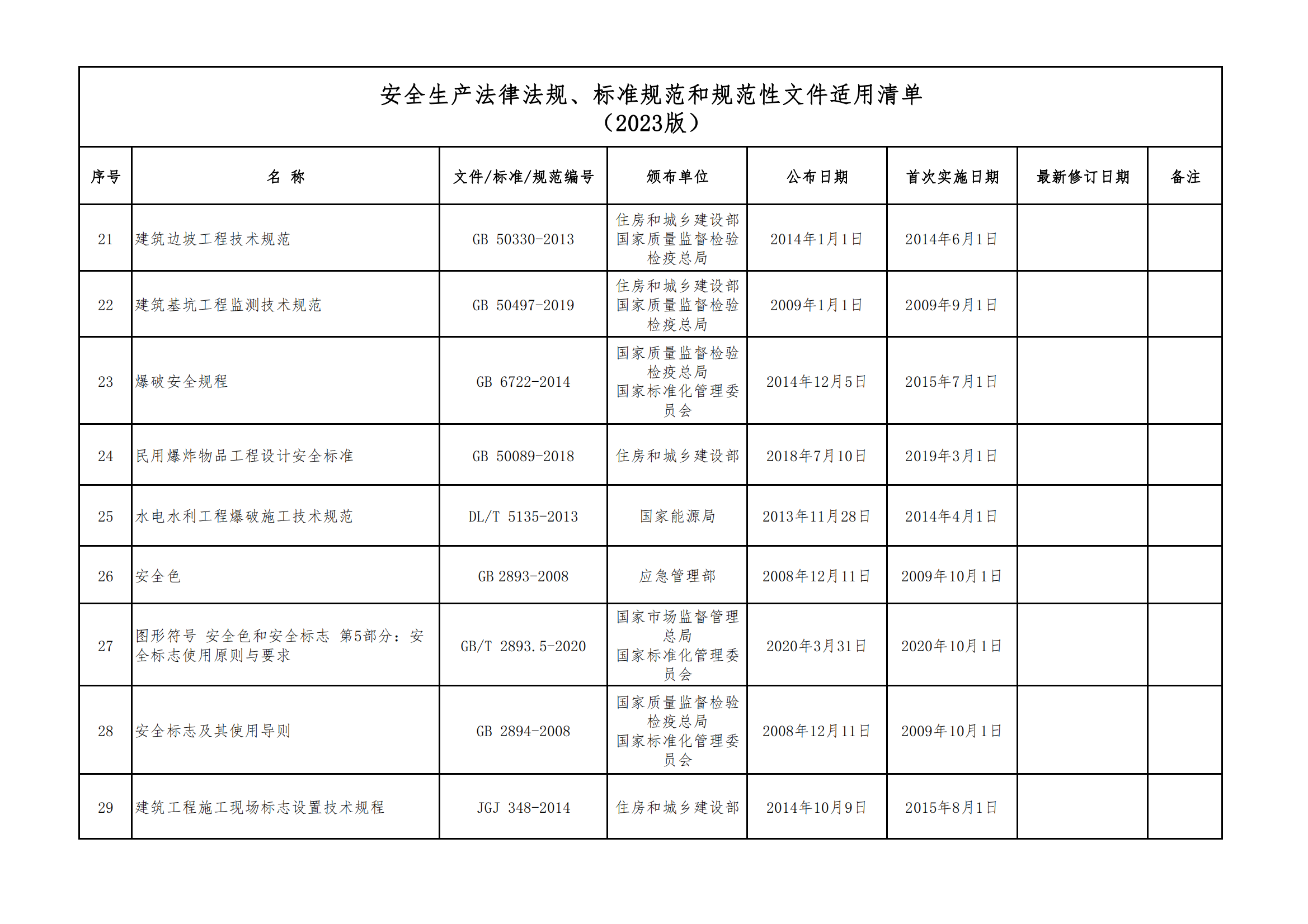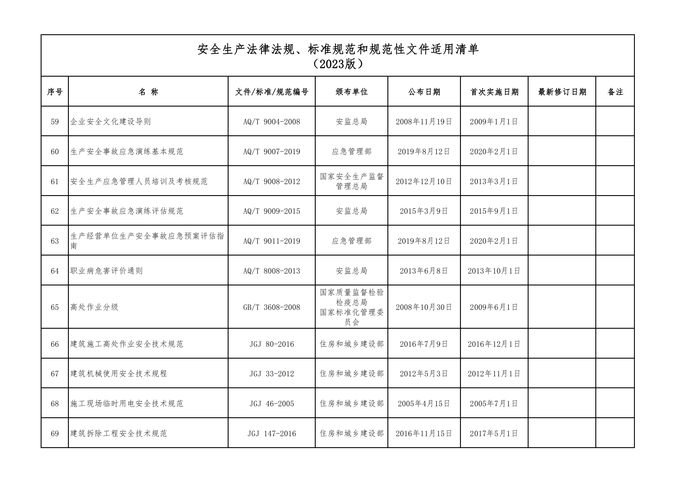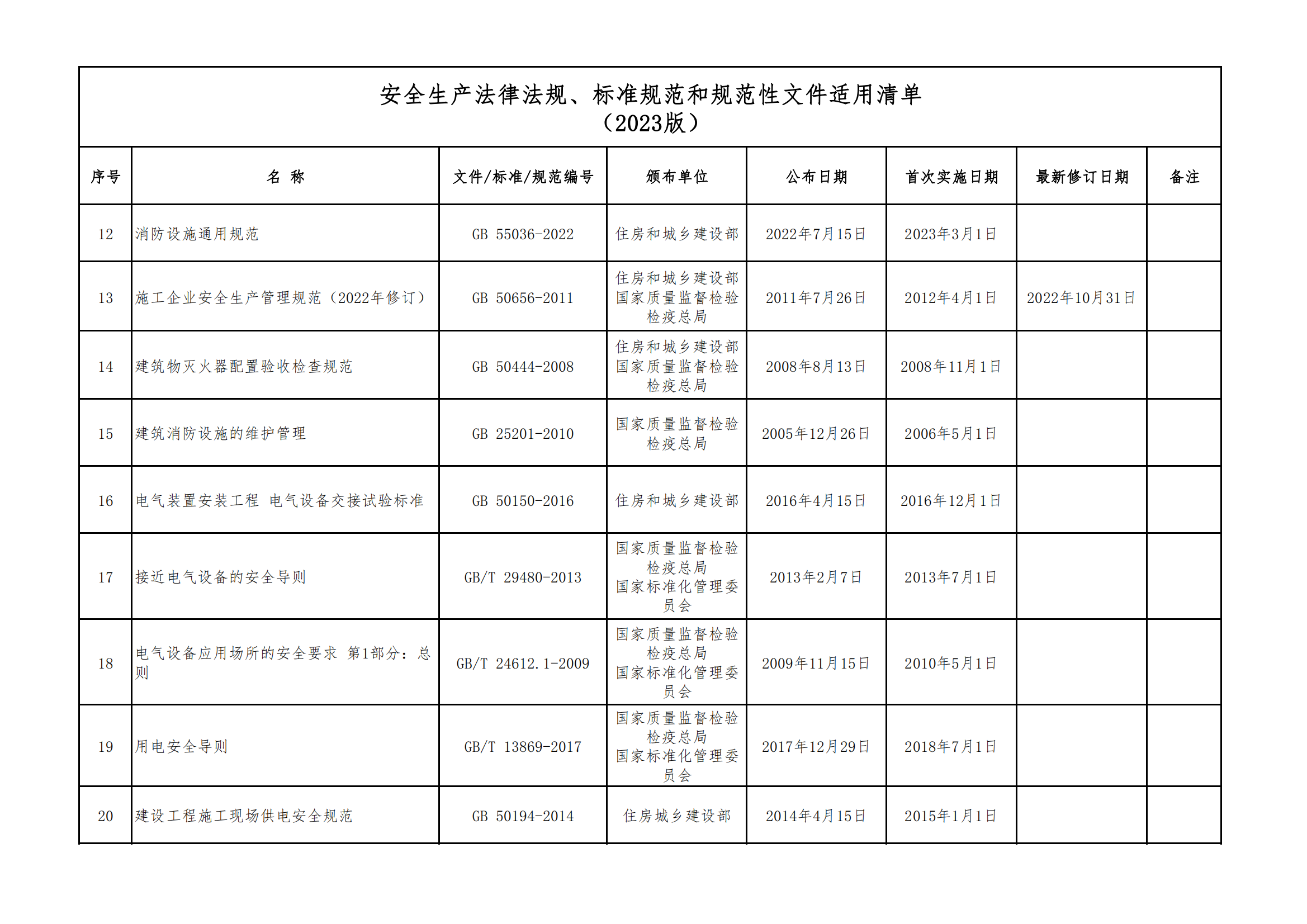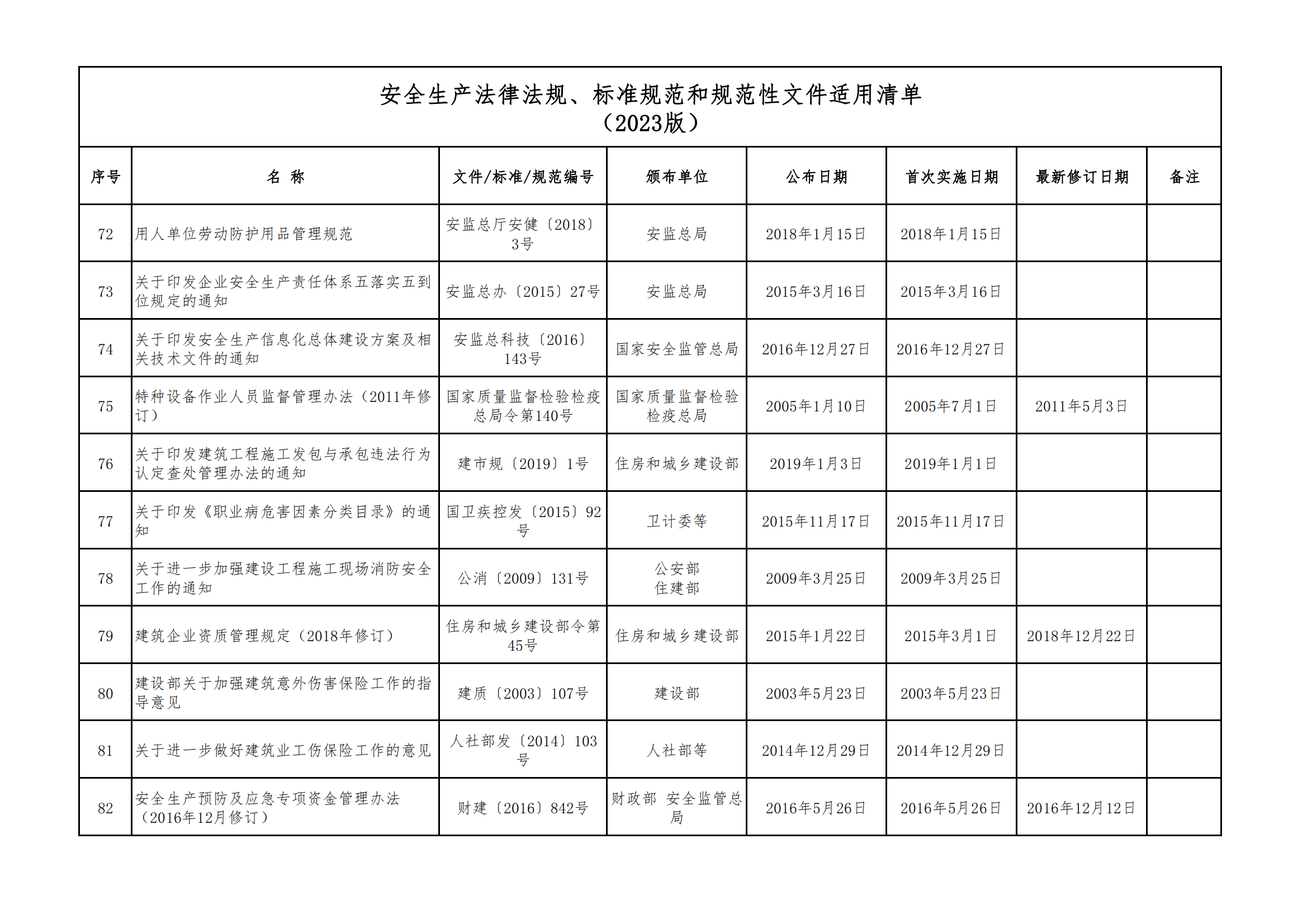 安全生產法律法規(guī)、標準規(guī)范和規(guī)范性文件適用清單