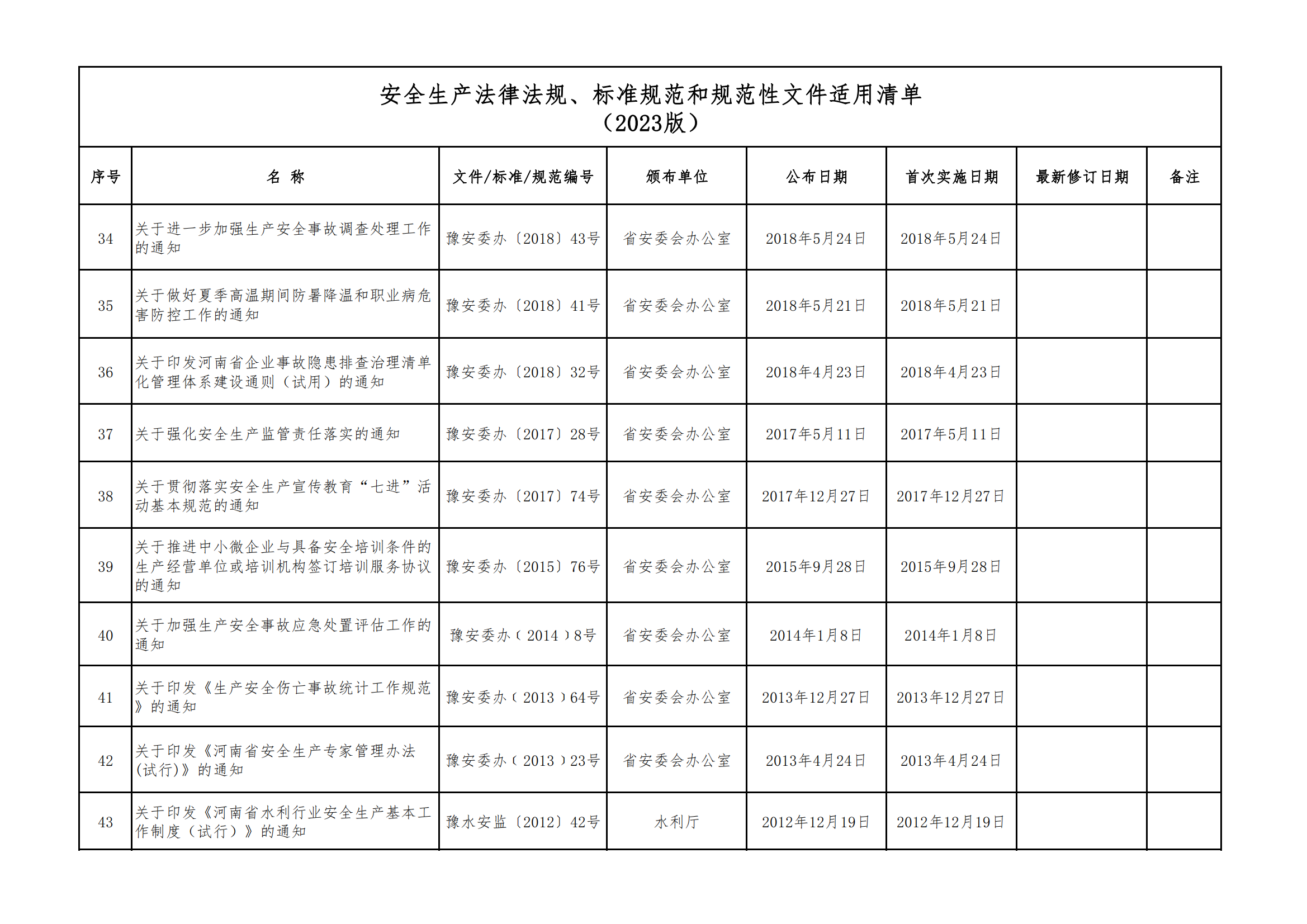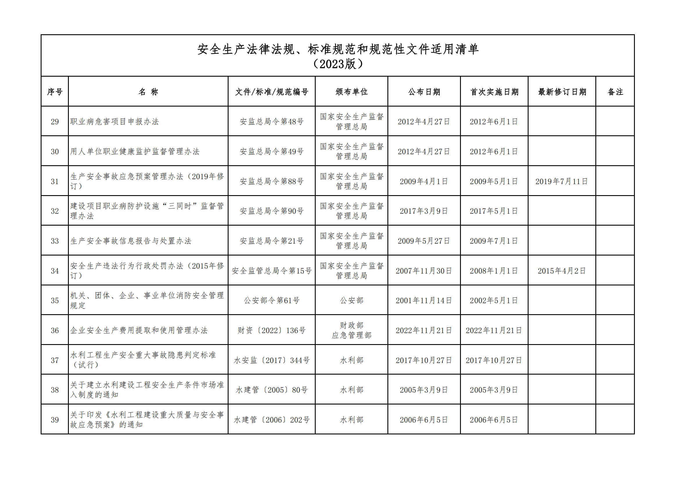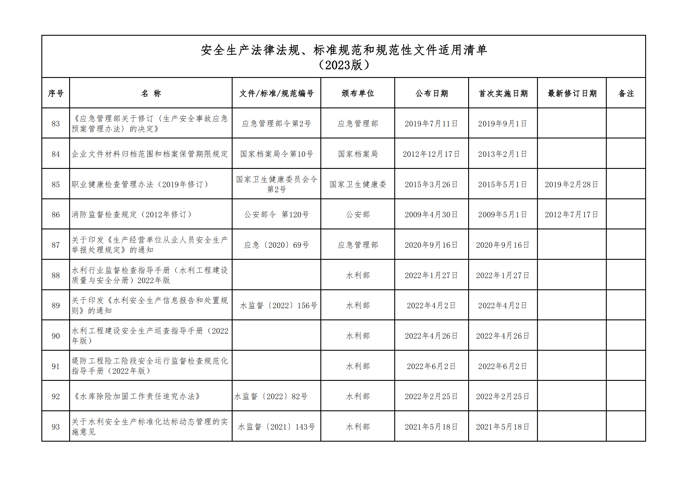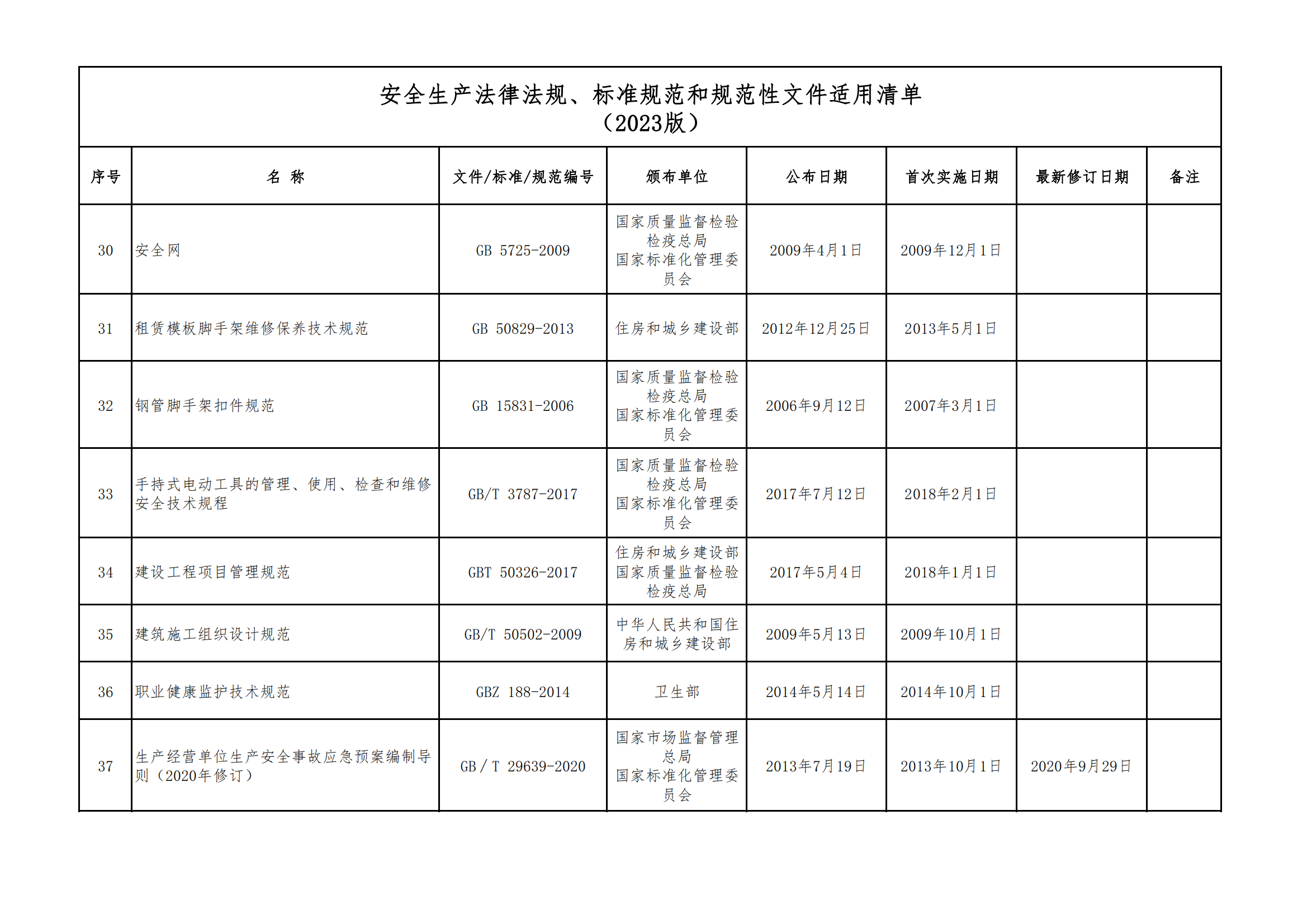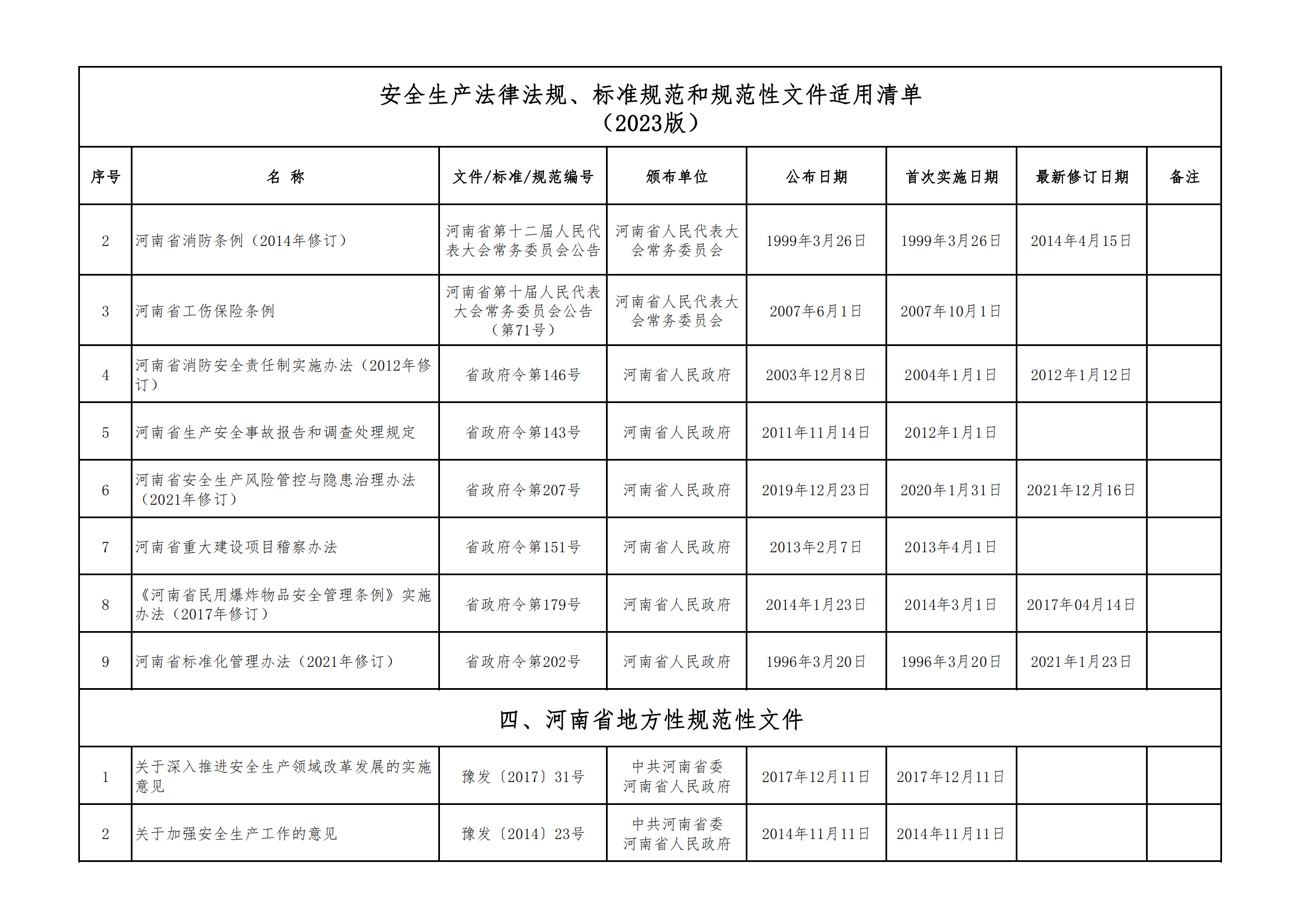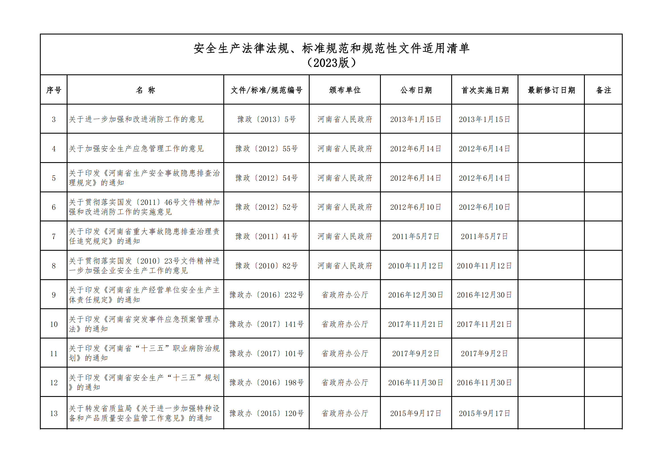 安全生產法律法規(guī)、標準規(guī)范和規(guī)范性文件適用清單