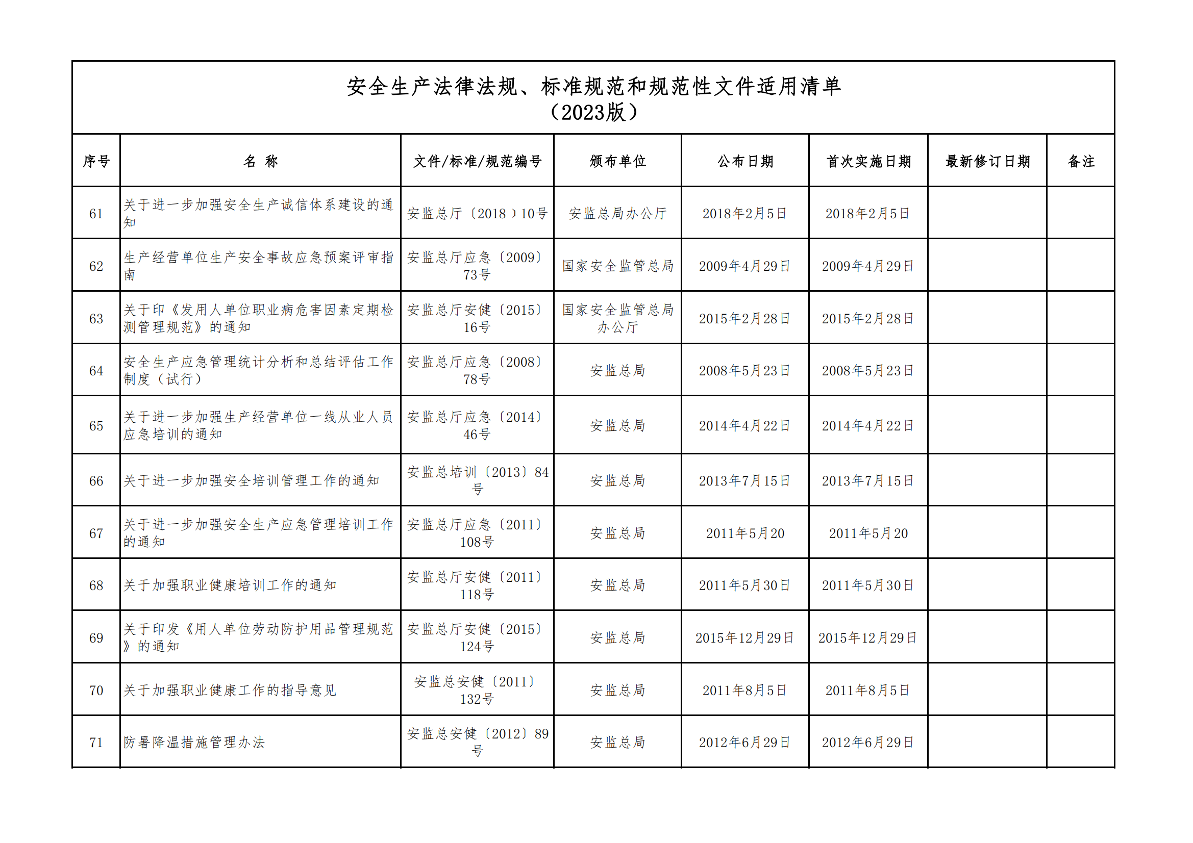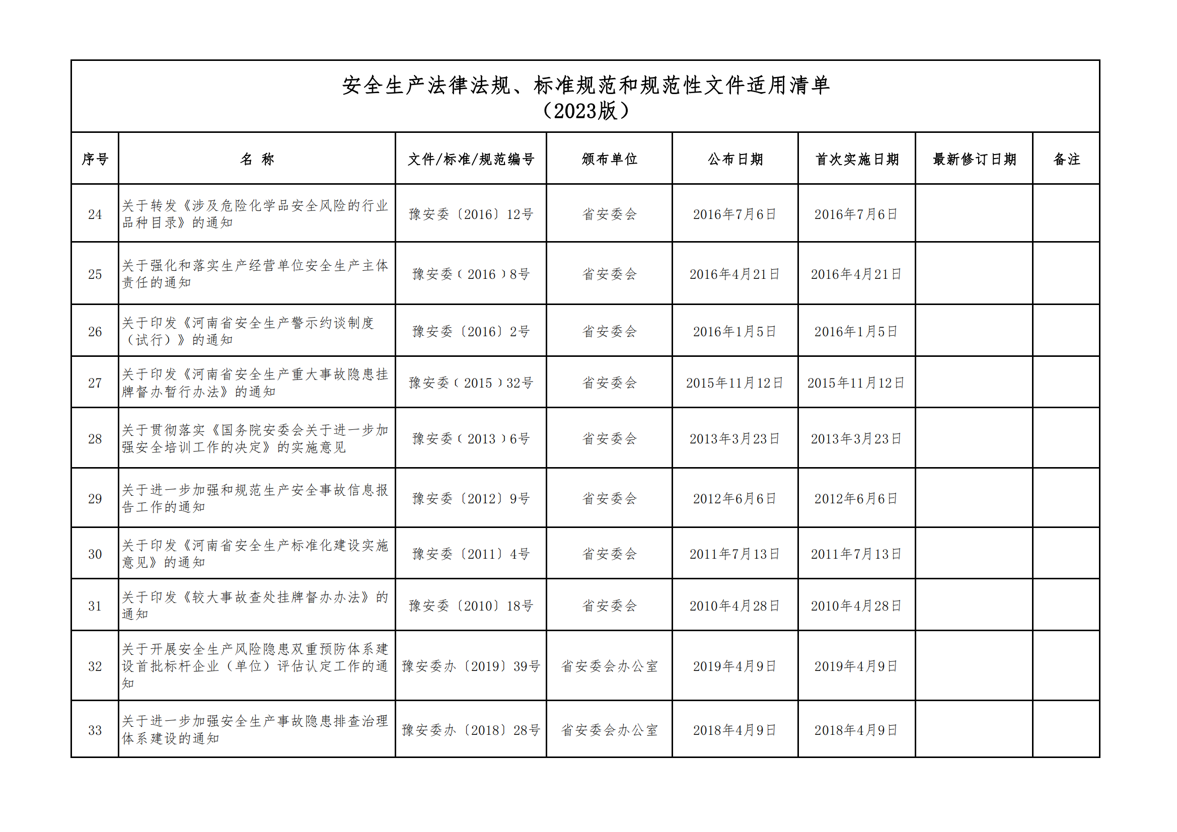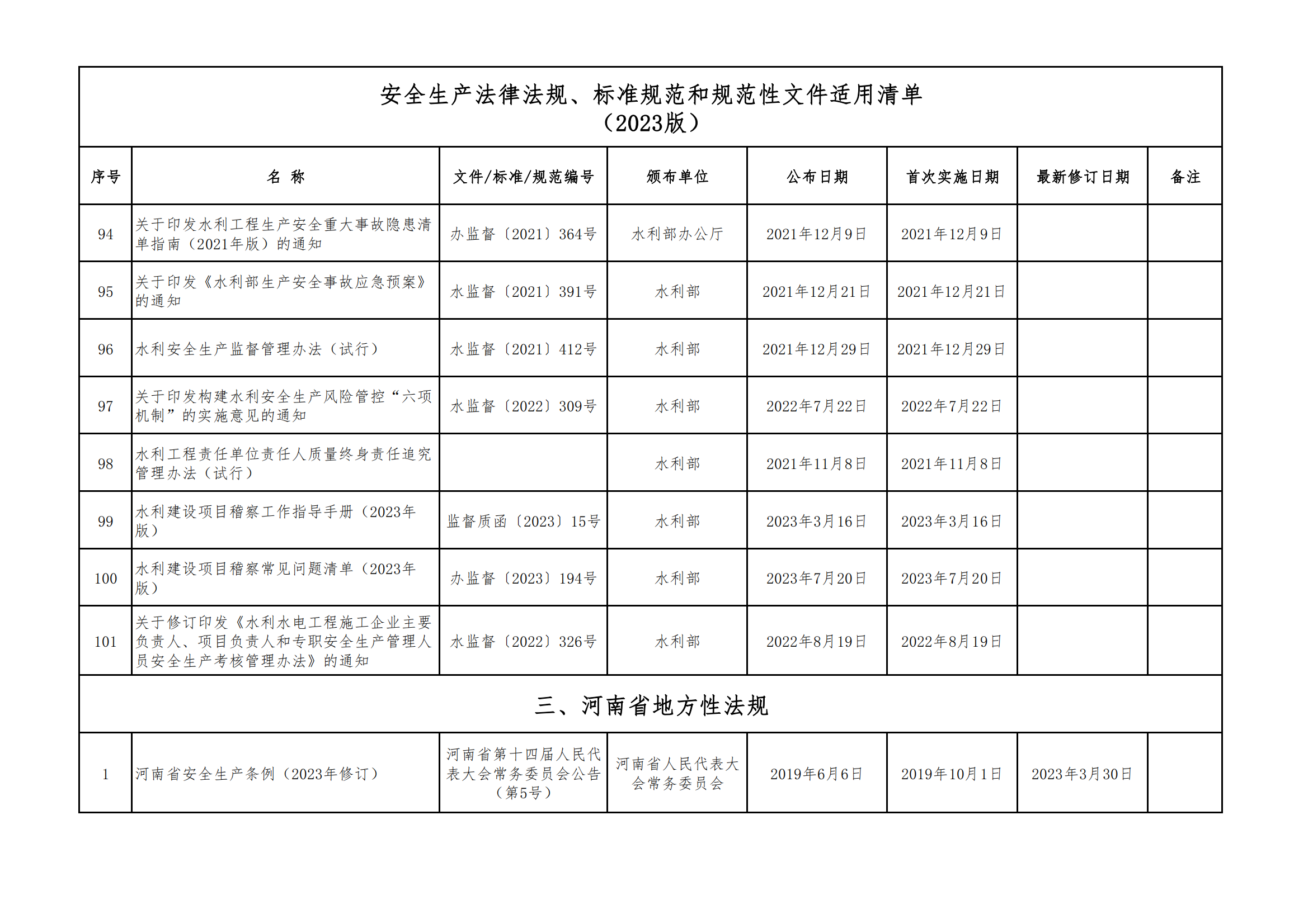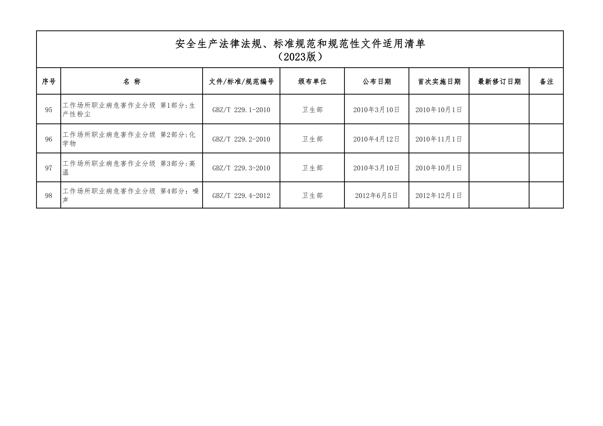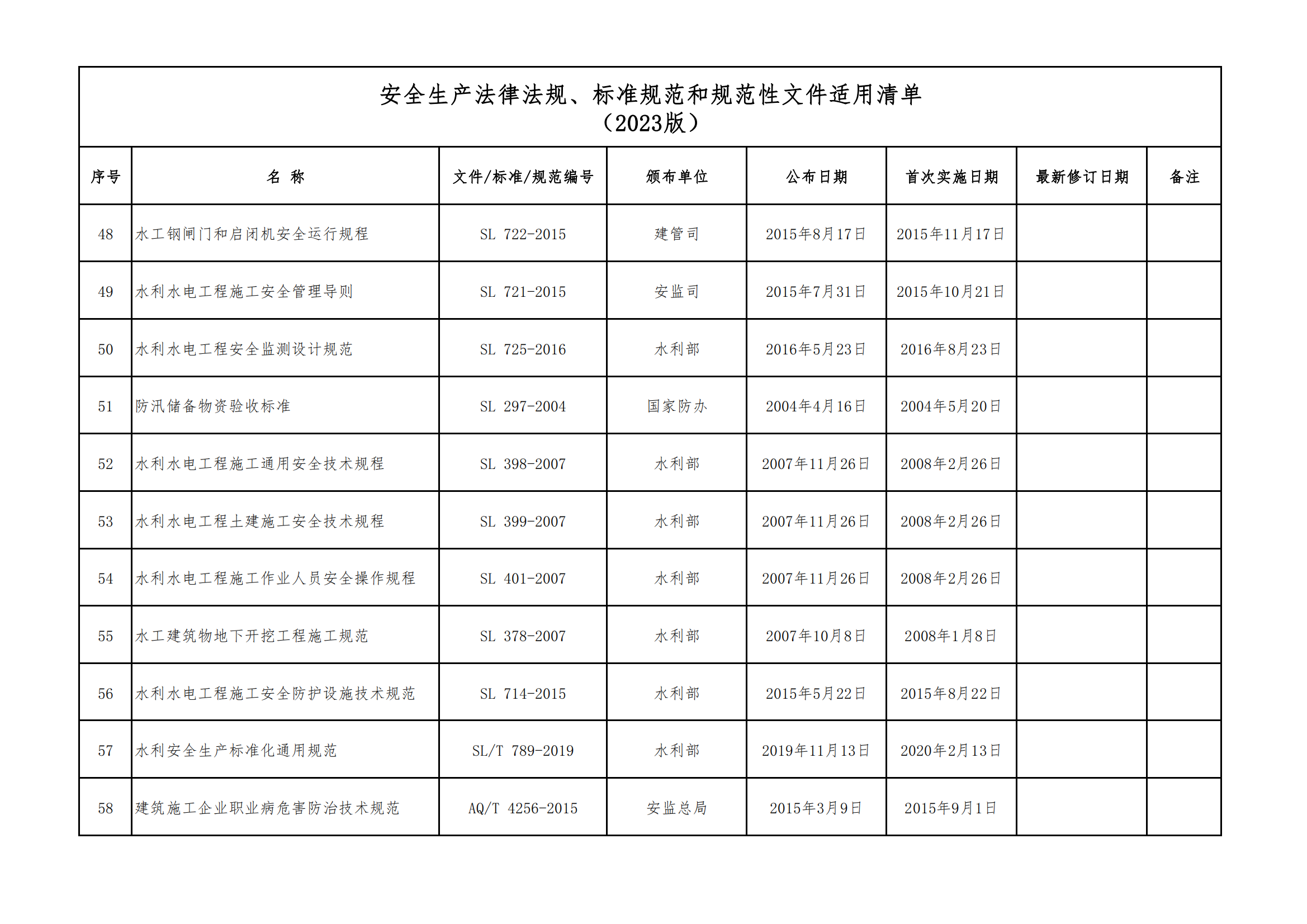 安全生產法律法規(guī)、標準規(guī)范和規(guī)范性文件適用清單