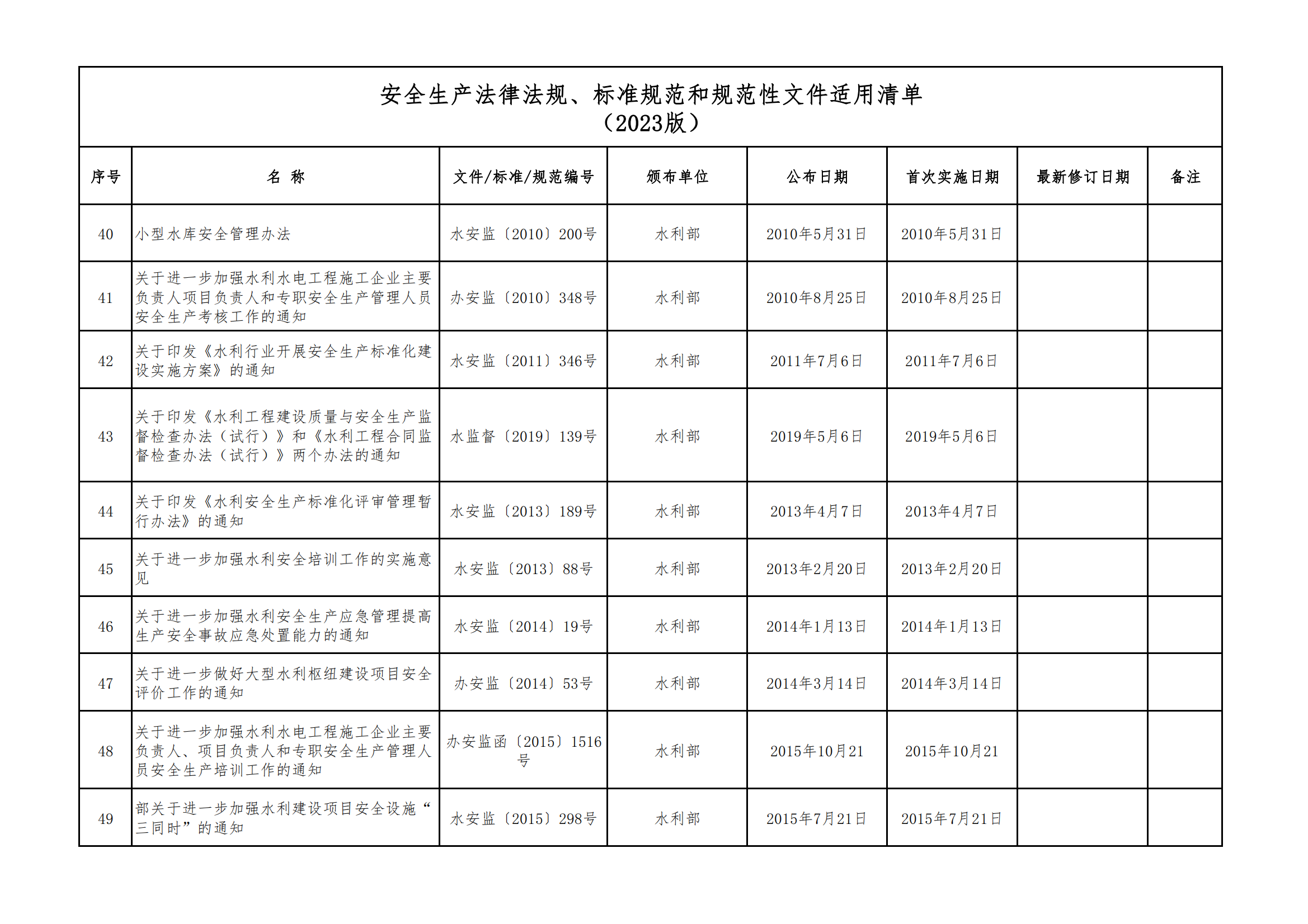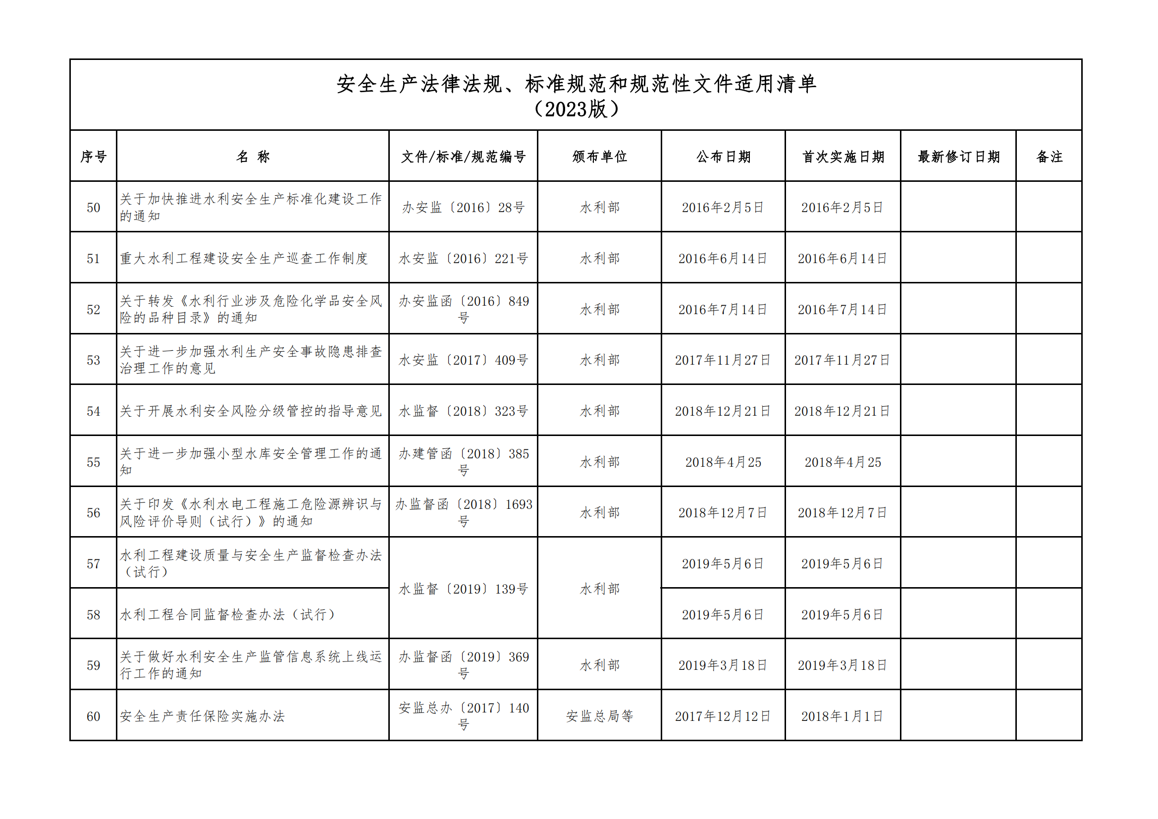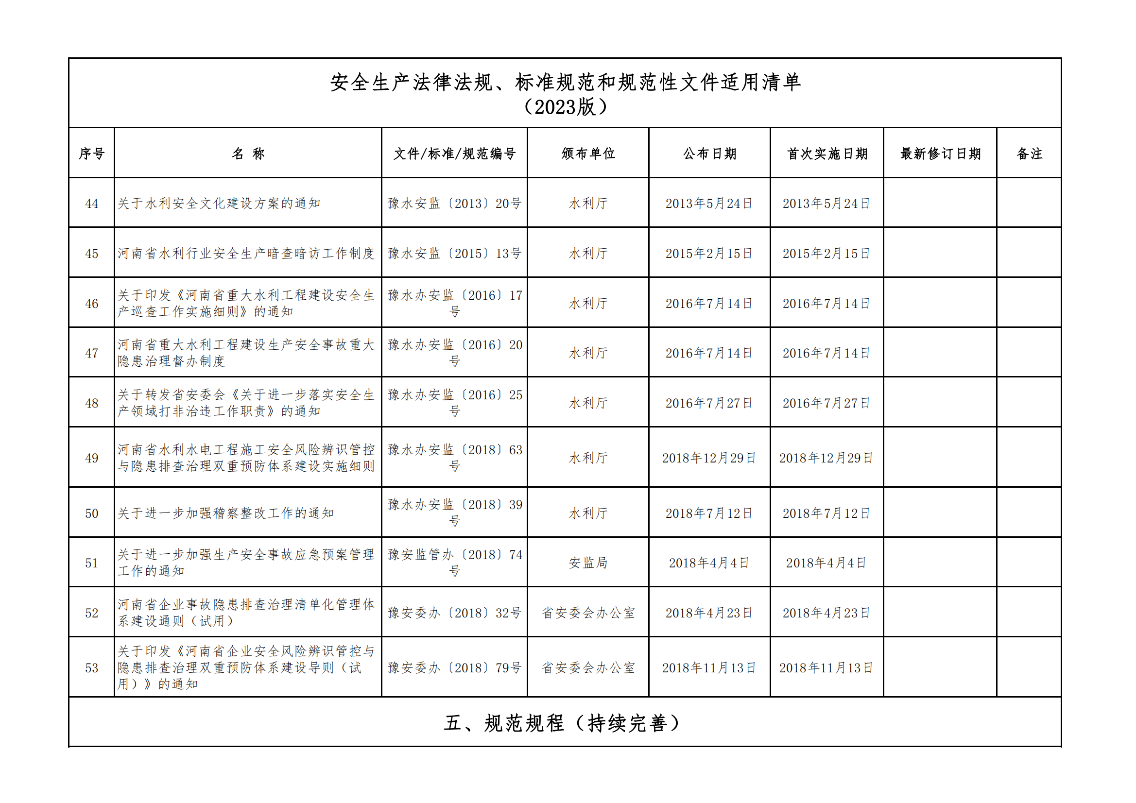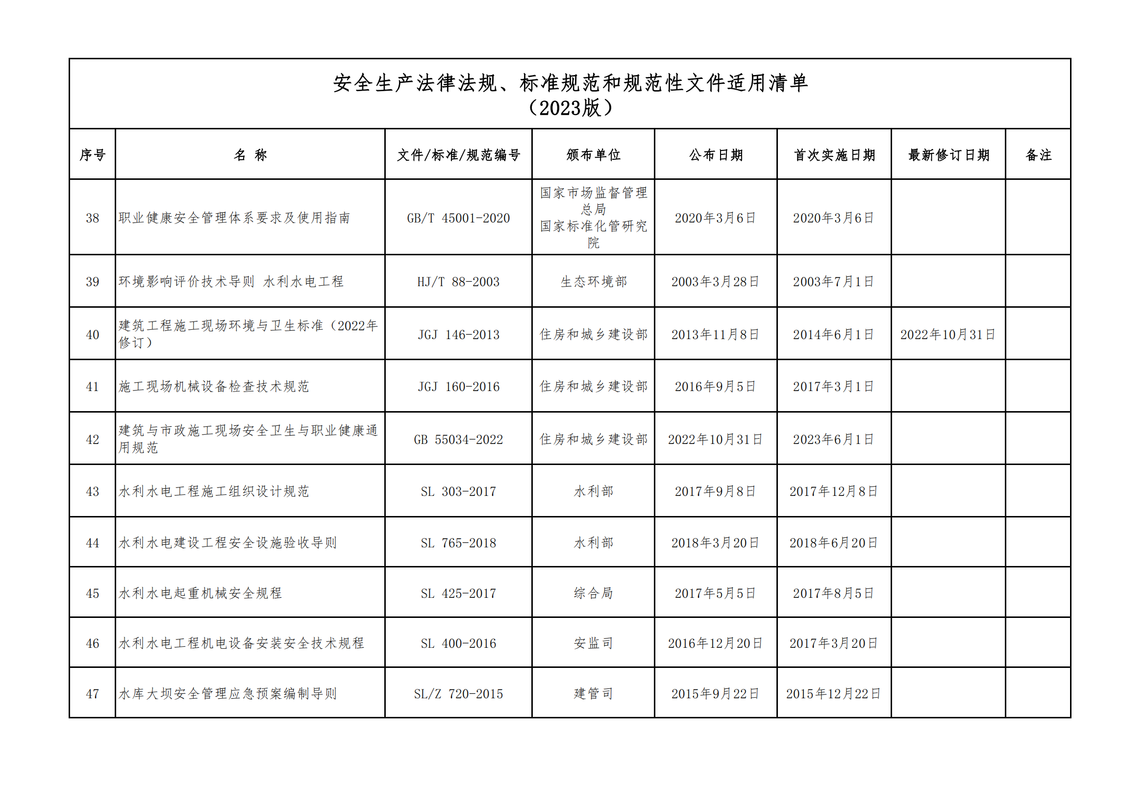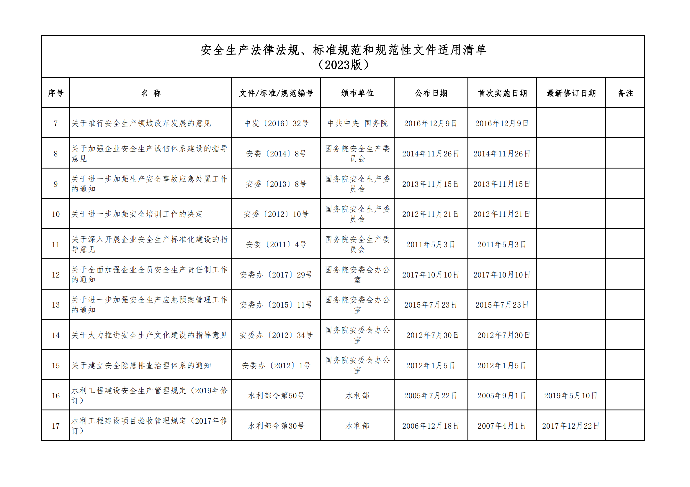 安全生產法律法規(guī)、標準規(guī)范和規(guī)范性文件適用清單
