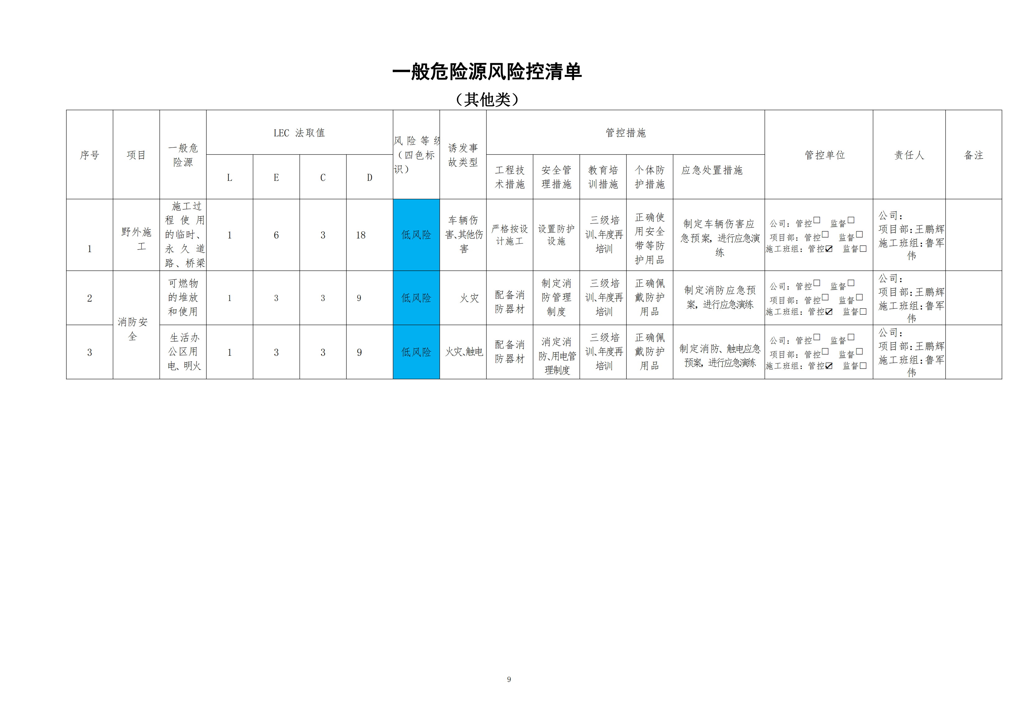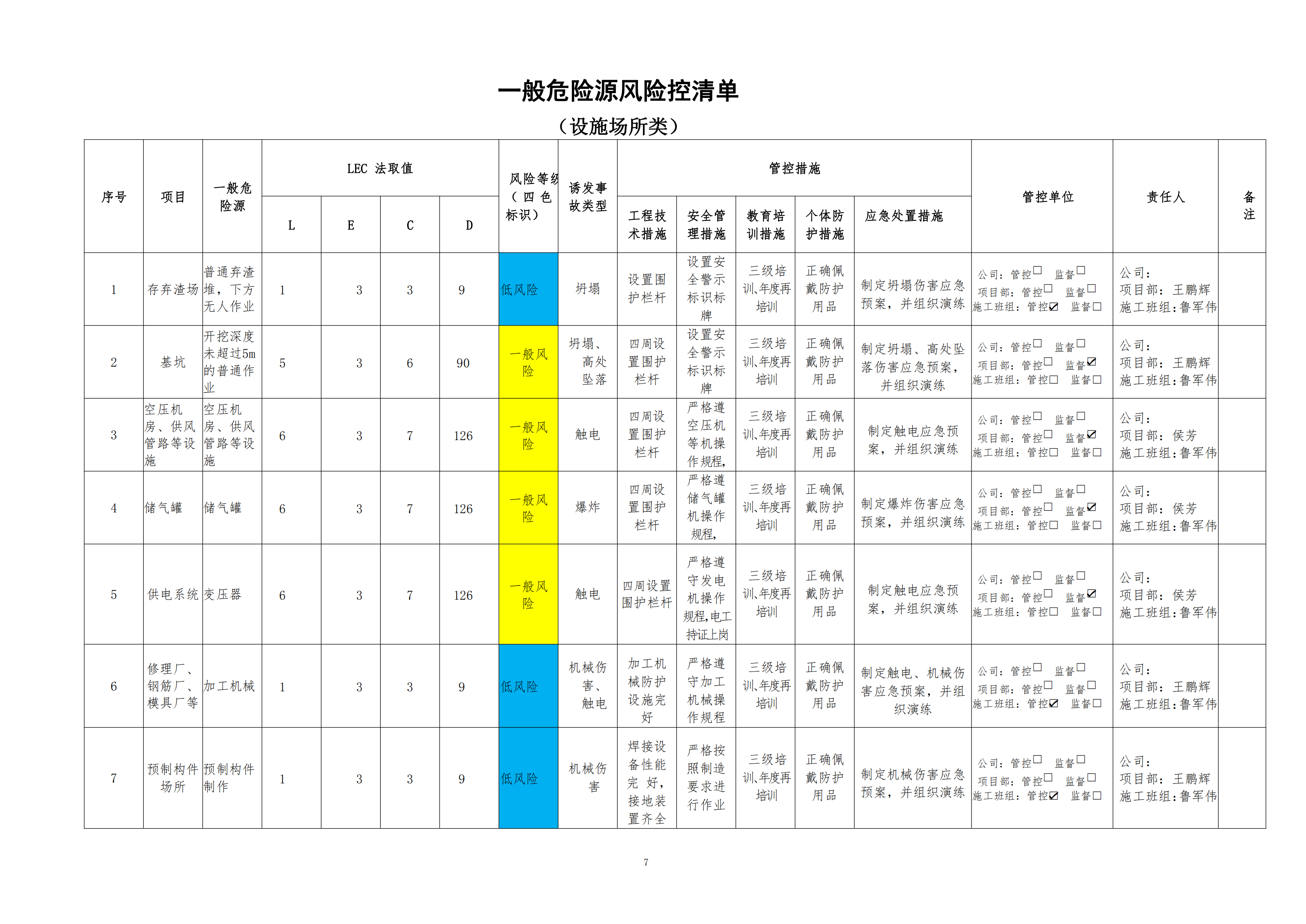 欒川縣新建水庫一期工程施工一標(biāo)段危險(xiǎn)源風(fēng)險(xiǎn)分級(jí)管控清單(3月)