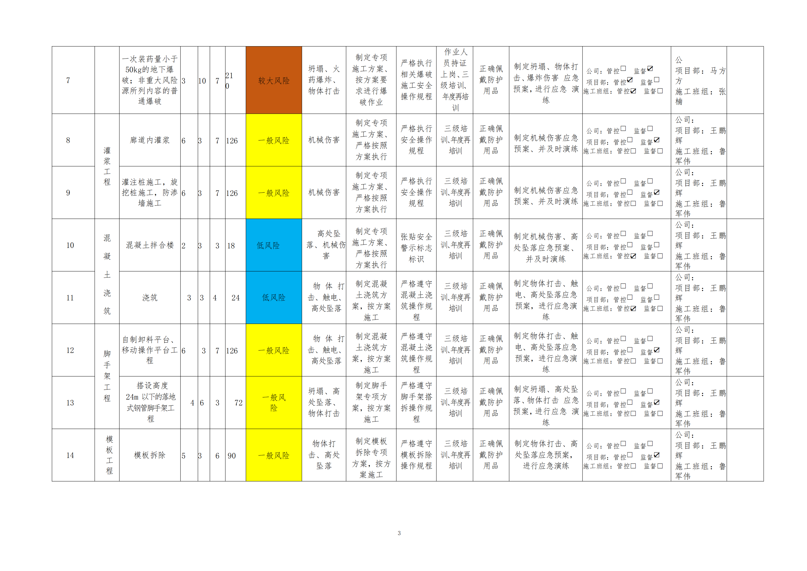欒川縣新建水庫(kù)一期工程施工一標(biāo)段危險(xiǎn)源風(fēng)險(xiǎn)分級(jí)管控清單(8月)