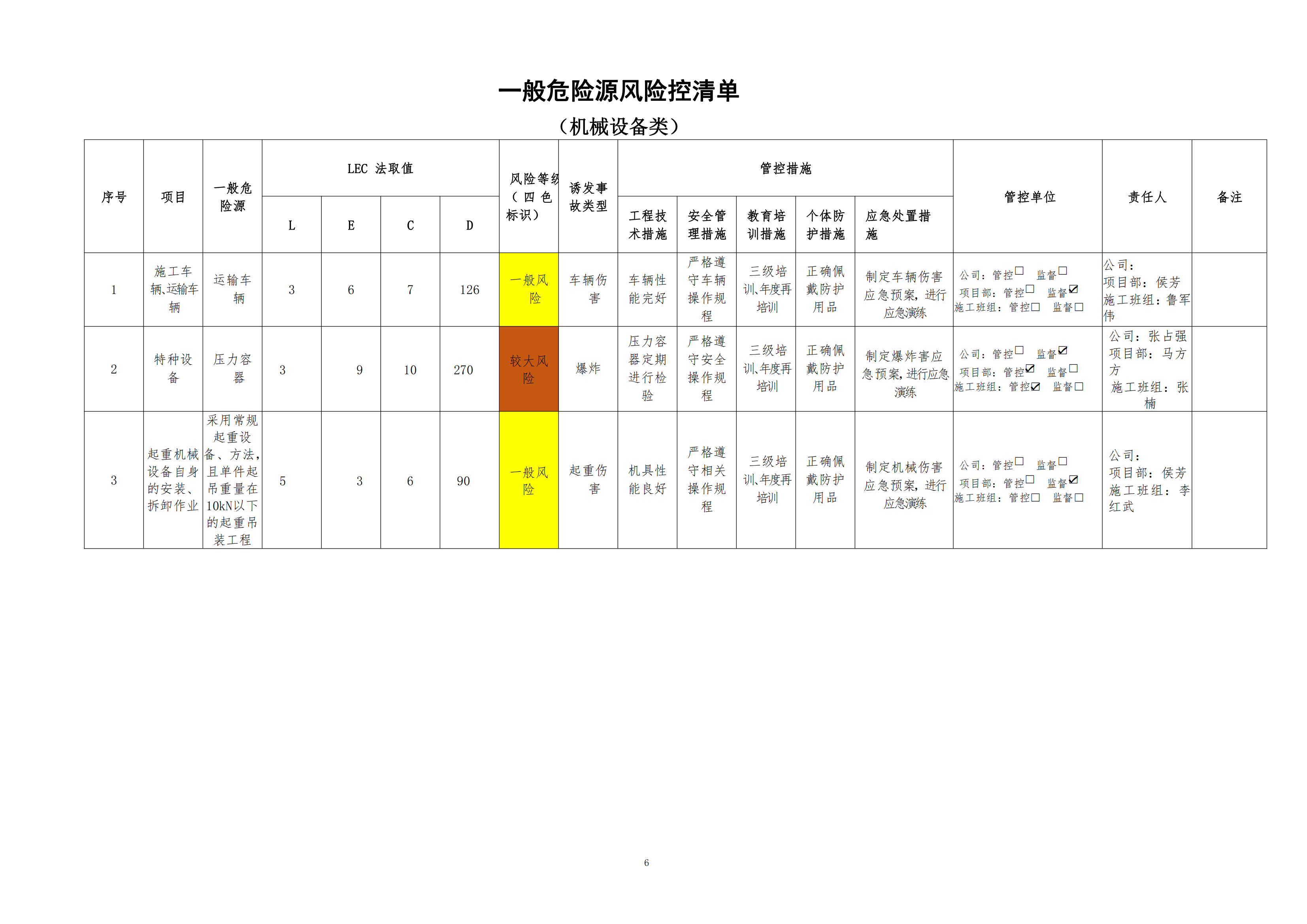 欒川縣新建水庫(kù)一期工程施工一標(biāo)段危險(xiǎn)源風(fēng)險(xiǎn)分級(jí)管控清單(10月)