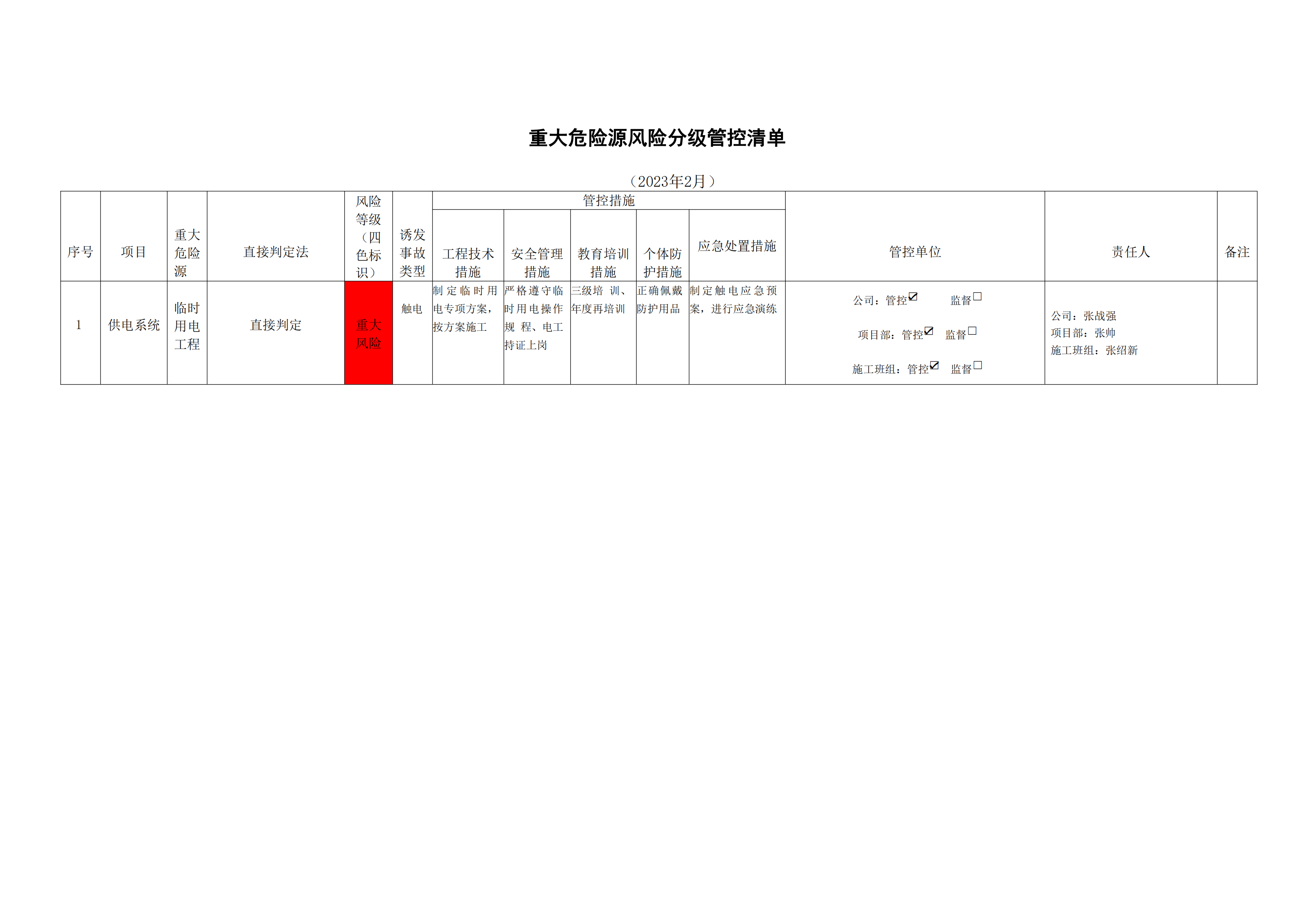 洛寧縣洛河生態(tài)治理三期危險源風險分級管控清單(2月)